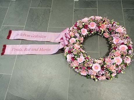 Ich berate Sie gefühlvoll bei der Wahl der Trauerfloristik. Sei dies Blumenkränze, Bouquetkränze, Schalen, Urnen- und Grabschmuck.